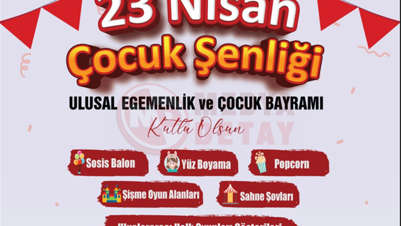 Çocuk şarkıları konserinden uluslararası halk oyunları gösterilerine kadar birbirinden eğlenceli etkinliklerin yer alacağı şenlikte, şişme oyun grupları, sahne şovları, yüz boyama ve karikatür atölyeleri de minikleri bekliyor olacak. Ayrıca pamuk şeker, patlamış mısır, sosis balon ve Türk bayrağı gibi çeşitli hediyeler de etkinlik alanında çocuklara ücretsiz olarak dağıtılacak.