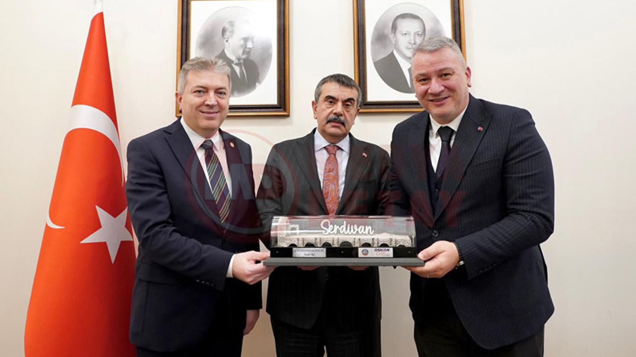 Serdivan Belediye Başkanı Osman Çelik’in Başkent programının en önemli duraklarından biri Milli Eğitim Bakanlığı oldu. AK Parti Sakarya Milletvekili Ertuğrul Kocacık ile birlikte Milli Eğitim Bakanı Yusuf Tekin’i makamında ziyaret eden Başkan Çelik, Serdivan’da özellikle eğitim alanında hayata geçirilen ve planlanan çalışmaları kapsamlı bir sunumla paylaştı. İlçedeki gençlerin geleceğine doğrudan dokunacak eğitim projelerinin detaylandırıldığı görüşmede, gençlik merkezleri ve eğitim alanındaki hedefler takdir topladı. Bakan Tekin, yürütülen projelerin Serdivan için taşıdığı değeri vurgulayarak tüm ilçe sakinlerine selamlarını iletti.