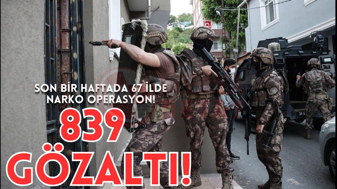 Emniyet Genel Müdürlüğü Narkotik Suçlarla Mücadele Başkanlığı ile Cumhuriyet Başsavcılıkları koordinesinde, 7-12 Nisan 2026 tarihleri arasında Türkiye genelinde kapsamlı operasyonlar gerçekleştirildi. Toplam 67 ilde düzenlenen operasyonlara 1.329 ekip, 3.322 personel, 16 hava aracı ve 39 narkotik dedektör köpeği katıldı. Çalışmalar kapsamında 839 şüpheli yakalandı. Operasyonlarda yapılan aramalarda 580 kilo 348 gram uyuşturucu madde ile 1 milyon 108 bin 107 adet uyuşturucu hap ele geçirildi.