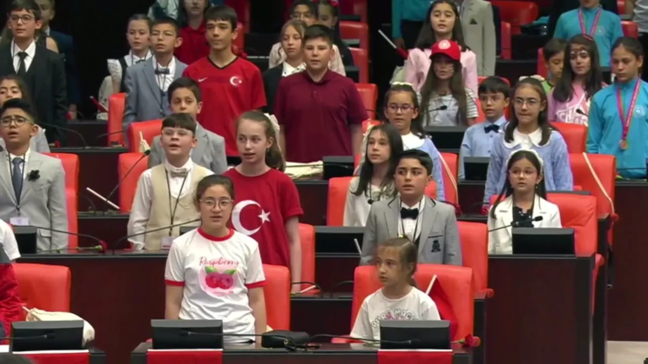 Milli Eğitim Bakanı Yusuf Tekin'in de hazır bulunduğu TBMM buluşmasında çocuklar, Genel Kurul kürsüsünden 23 Nisan'ın anlam ve önemine dair duygularını, düşüncelerini ve geleceğe dair hayallerini paylaştı.