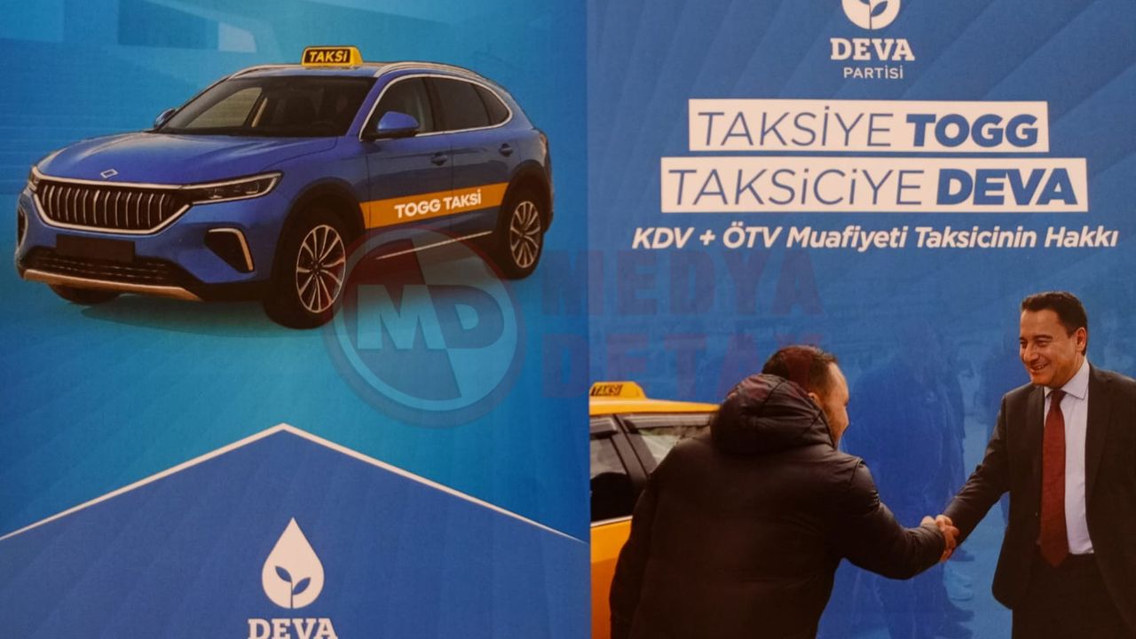 DEVA Partisi Genel Başkanı Ali Babacan’ın duyurduğu proje; taksilerde yerli elektrikli araçların kullanılmasını, TOGG’un ÖTV’siz ve KDV’siz şekilde esnafa sunulmasını, uygun ödeme koşullarıyla araç yenilemenin kolaylaştırılmasını, şehir içi ulaşımda modern ve çevreci bir dönüşüm sağlanmasını, yerli üretim TOGG aracımızın Türkiye’ye gelen turistlere tanıtılmasını hedefliyor. Proje, Babacan tarafından “Türkiye için büyük fırsat” olarak tanımlanıyor.