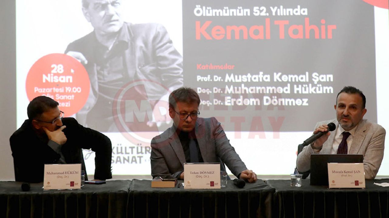 Ustanın başarılarına değinen Prof. Dr. Mustafa Kemal Şan, “Kemal Tahir 20. yüzyılda yetişmiş en büyük Türk romancısıdır. Türk toplum kimliğinin, Türk tarihinin edebiyata yansıtılması noktasında göstermiş olduğu çaba ve başarılarda biz bunu buluyoruz. Eserlerinde, önemli deneyimlere imza atmış bir milletin, büyük başarılara imza atmış olan bir milletin geleceği kurma konusunda da aynı cesareti sergileyebileceğini düşünmektedir” şeklinde konuştu.