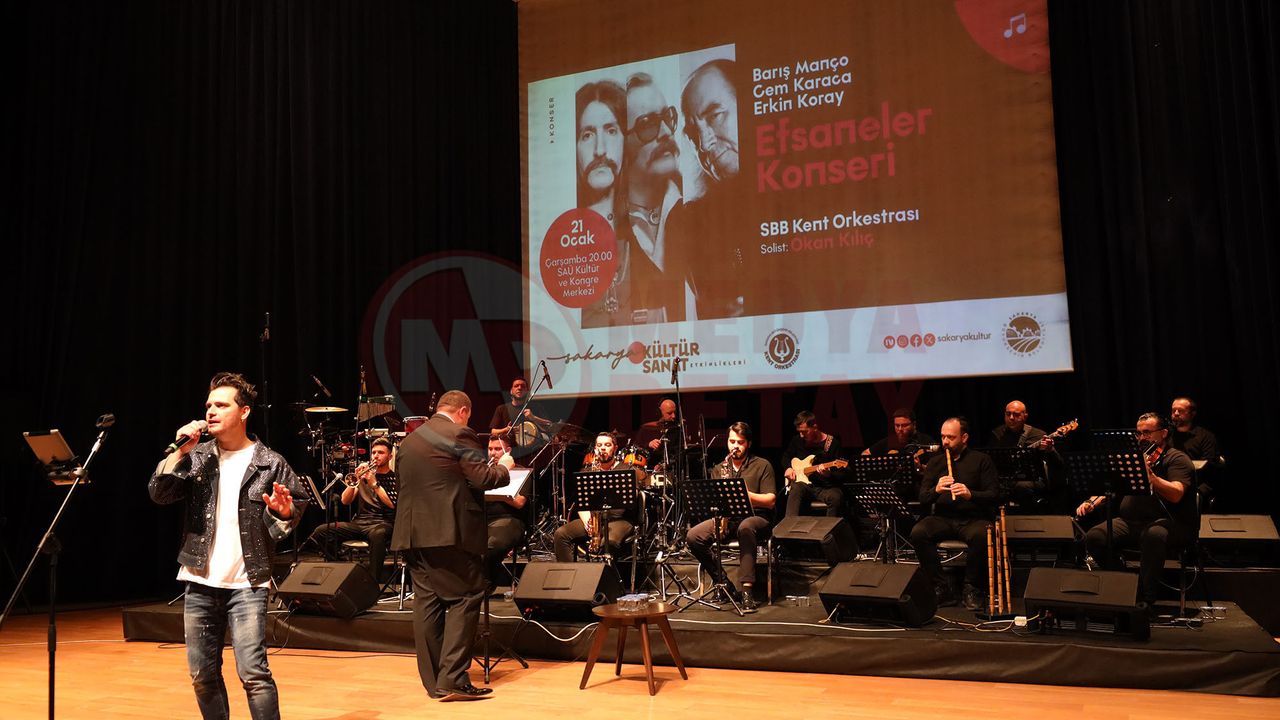 Sakarya Büyükşehir Belediyesi tarafından düzenlenen Ocak ayı kültür sanat etkinlikleri müikseverleri bir araya getiren ‘Efsaneler Konseri’ ile devam etti. Türk Rock Müziğinin usta isimleri Barış Manço, Cem Karaca ve Erkin Koray’,n unutulmaz eserleri Büyükşehir Kent Orkestrası’nın üstün performansıyla yeniden can buldu. SAÜ Kültür ve Kongre Merkezi’nde gerçekleştirilen ve Solist olarak Okan Kılıç’ın sahne aldığı konser, Sakaryalı müzikseverlerden alkış topladı. Zaman zaman duygusal anlara sahne olan konserde, geçmişten gelen nostaljik eserlerle hem unutulmaz bir gece yaşandı hem de müzikseverler şarkılara hep bir ağızdan eşlik ederek Türk Müziği’nin efsane isimlerini andı.