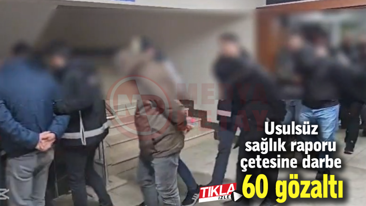 Sakarya Cumhuriyet Başsavcılığı koordinesinde usulsüz sağlık kurulu raporu aldığı ve rapor almaya aracılık ettiği değerlendirilen şahıslara yönelik, Sakarya İl Emniyet Müdürlüğü KOM Şube Müdürlüğü’nce Sakarya başta olmak üzere İstanbul, Kocaeli, Düzce ve Sinop illerinde eş zamanlı operasyon yapıldı. Operasyonlarda 60 şahıs gözaltına alındı.