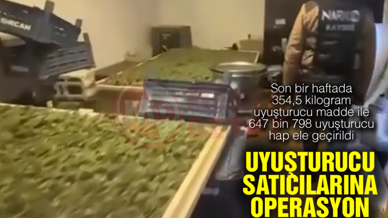Bakan Yerlikaya, sosyal medya hesabından yaptığı paylaşımda, 65 ilde uyuşturucu madde satıcılarına yönelik 1 haftadır polis ekipleri tarafından düzenlenen operasyonlara ilişkin bilgi verdi. Yerlikaya, düzenlenen operasyonlarda 354,5 kilogram uyuşturucu madde ile 647 bin 798 uyuşturucu hapın ele geçirildiğini açıkladı. Öte yandan, Yerlikaya operasyonlarda 768 şüphelinin de yakalandığını sözlerine ekledi.