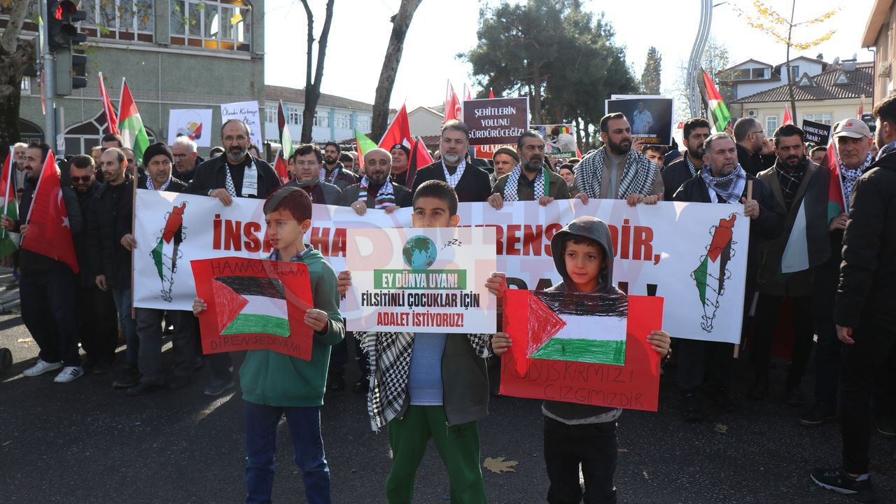 Adapazarı ilçesindeki Salko Camii önünde toplanan kalabalık, Filistin’e destek için yürüyüş gerçekleştirdi. Sakarya Caddesi ve Atatürk Bulvarı üzerinden yürüyen vatandaşlar, ellerindeki pankartlarla Adapazarı Kültür Merkezi (AKM) önüne geldi. Burada tekbir getiren grup, İsrail’i kınadı.