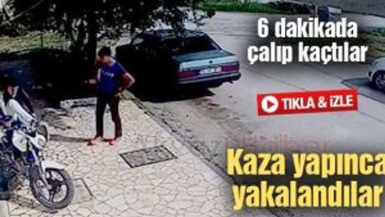6 dakikada çalıp kaçtılar! Kaza yapınca yakalandılar