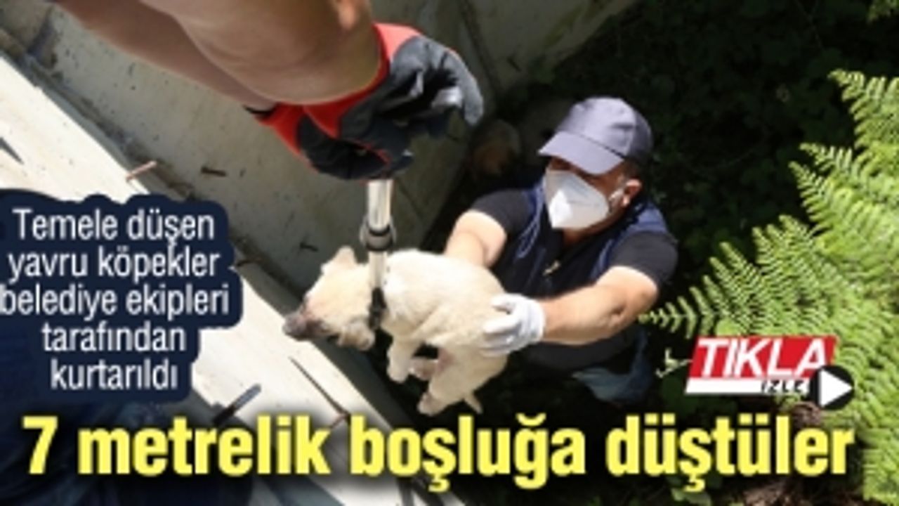 Serdivan'da yüksek gerilim hattı temelindeki 7 metrelik boşluğa düşen yavru köpekler, belediye ekipleri tarafından kurtarıldı.