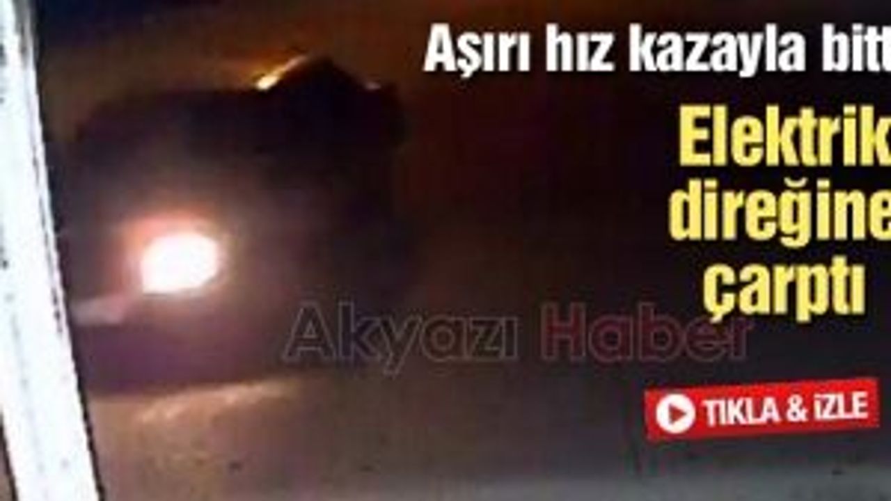Akyazı'da otomobilin elektrik direğine çarptığı kaza güvenlik kamerasınca saniye saniye görüntülendi.