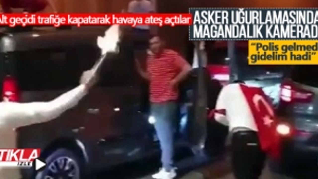 Asker uğurlamasında yolu kapatarak havaya ateş açtılar