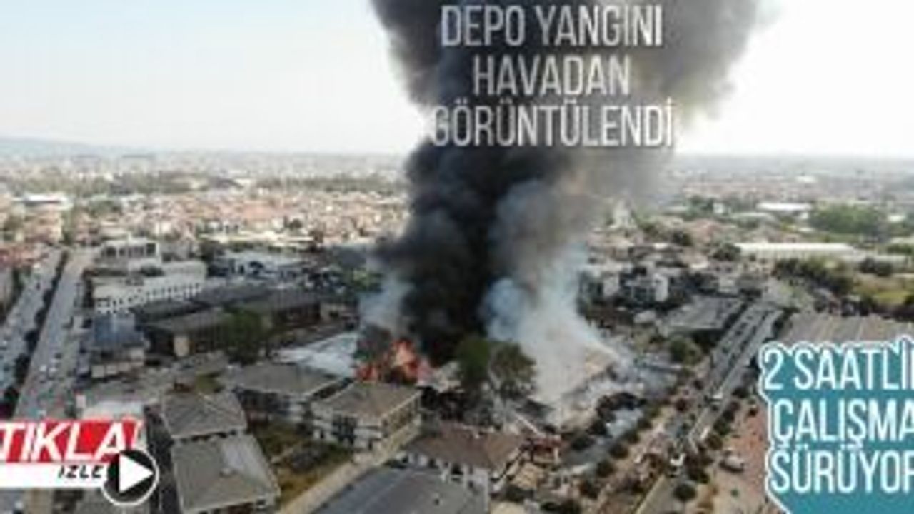 ...Depo yangını havadan görüntülendi