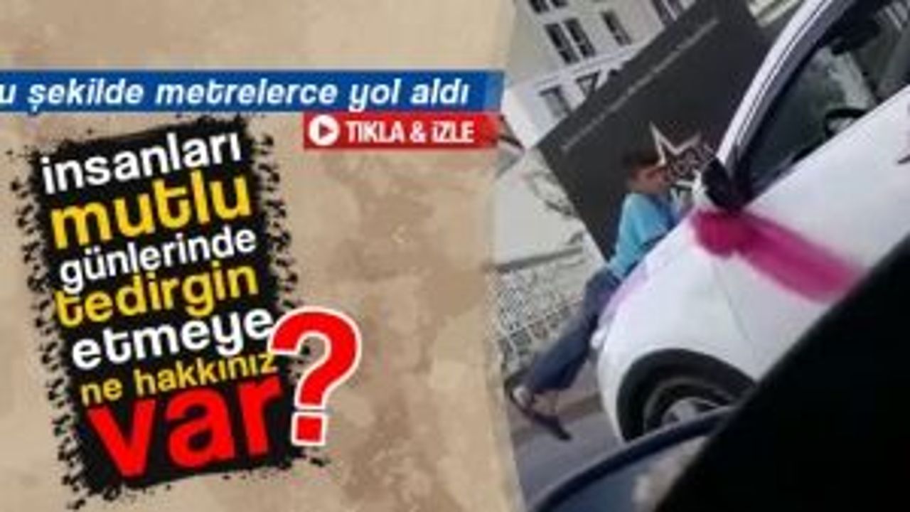 Sakarya'da gelin arabasının kaportasına atlayarak zarf isteyen çocuk yürekleri ağızlara getirdi.