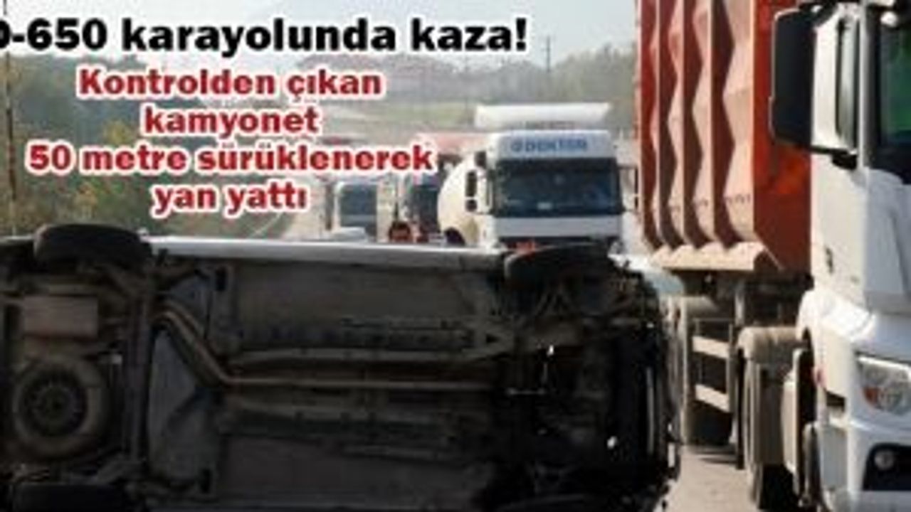 D-650 karayolunda sürücüsünün kontrolünden çıkarak yaklaşık 50 metre sürüklenen kamyonet yan yattı. Kazada sürücü yaralanırken, karayolunda uzun araç kuyruğu oluştu.