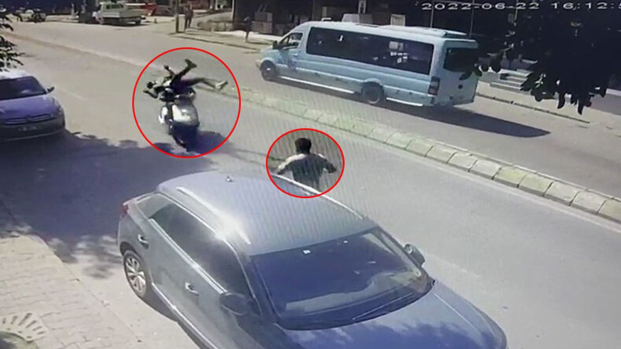 Motosikletin çarptığı yaya başka bir yayanın üzerine uçtu!