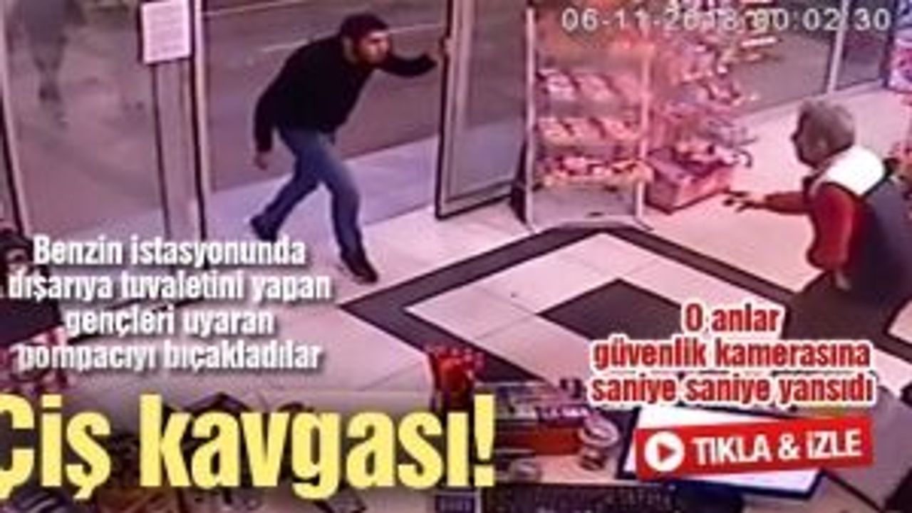 Erenler ilçesinde bir benzin istasyonunun dışına tuvaletlerini yapan gençleri uyaran pompacı, gençlerden biri tarafından bıçaklandı. O anlar ise güvenlik kameraları tarafından saniye saniye görüntülendi.