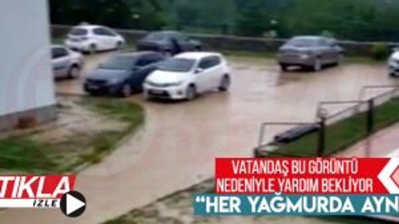 Sakarya'da yağmurlu havalarda sitelerinin bahçesini su bastığını söyleyen site sakinleri yetkililerden yardım istedi.