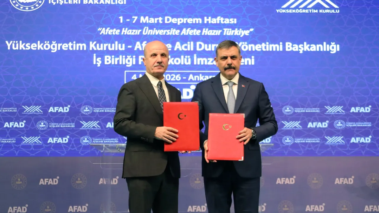 İçişleri Bakanlığı, Yükseköğretim Kurulu (YÖK) ile Afet ve Acil Durum Yönetimi Başkanlığı (AFAD) arasında 'Afete Hazır Üniversite' iş birliği protokolünün imzalandığını açıkladı. İçişleri Bakanı Mustafa Çiftçi, sosyal medya hesabından yaptığı paylaşımda, protokolün üniversitelerin afet ve acil durumlara hazırlık kapasitesini güçlendirmeyi amaçladığını belirtti. Bakan Çiftçi, söz konusu iş birliği ile üniversitelerde afet farkındalığı eğitimlerinin yaygınlaştırılması ve afet yönetimi alanında akademik çalışmaların teşvik edilmesinin planlandığını söyledi. Protokol çerçevesinde ayrıca AFAD Gönüllülük Sistemi ile uyumlu öğrenci topluluklarının desteklenmesi, üniversite kampüslerinde düzenli tatbikatların yapılması ve akademik bilgi ile sahadaki tecrübenin bir araya getirileceği ortak AR-GE çalışmalarının yürütülmesinin de hedeflendiğini belirten Bakan Çiftçi, -7 Mart Deprem Haftası kapsamında toplumda afet bilincinin güçlendirilmesine yönelik çalışmaların da süreceğini kaydetti. Bakan Çiftçi, afet yönetiminin yalnızca kriz anında yürütülen bir süreç olmadığına dikkat çekerek, bilim, eğitim ve planlama ile afet öncesinde başlayan bir hazırlık sürecinin önemine vurgu yaptı.