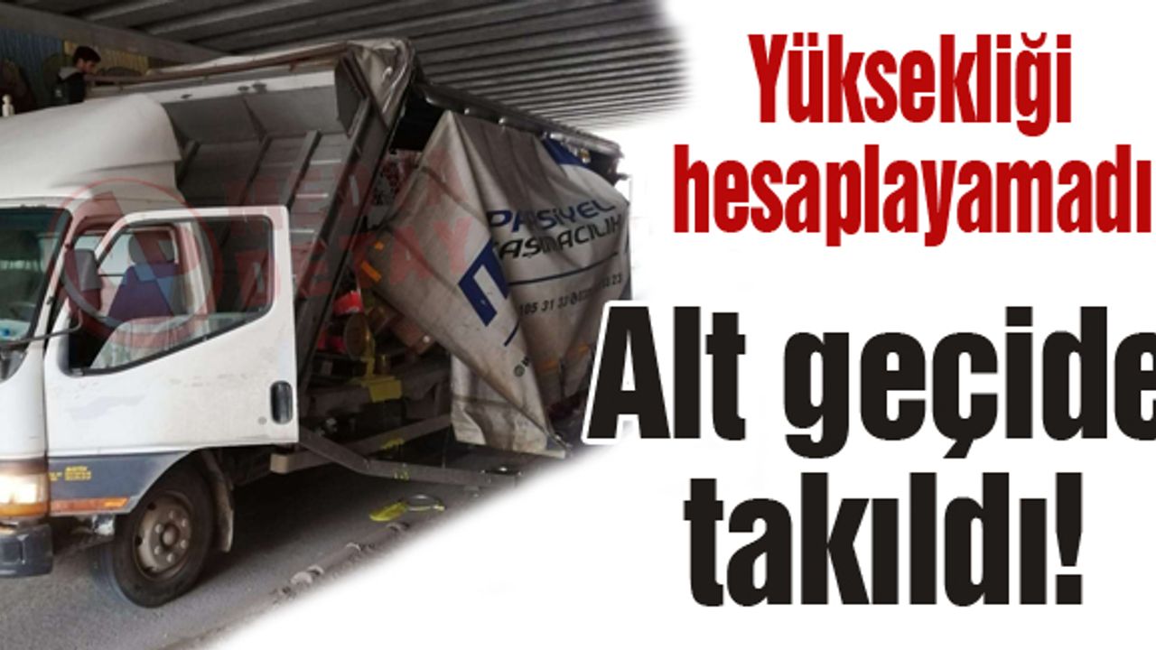 Sürücüsünün kimliği öğrenilemeyen boya yüklü kamyonet, Arifiye ilçe merkezinde bulunan yüksekliği 3 metre olan alt geçitten geçmek istedi. Ancak sürücünün yüksekliği hesaplayamaması üzerine, kamyonetin üzerindeki boya kutuları üst geçide çarparak yola döküldü.